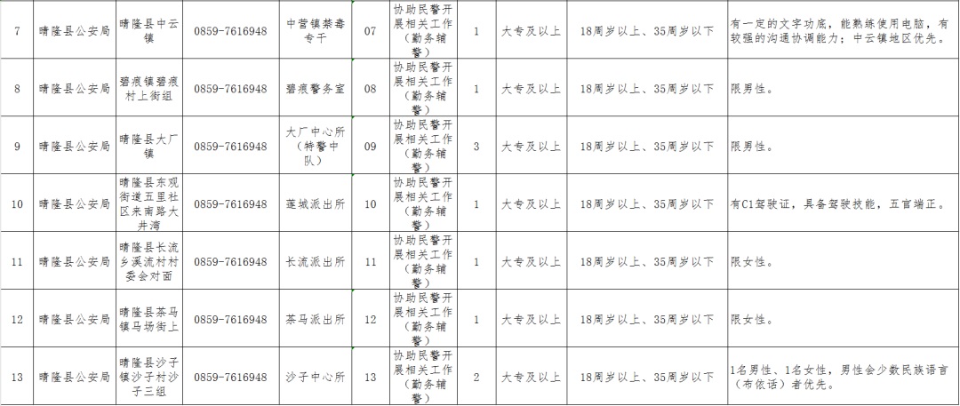 2023黔西南晴隆縣公安局關于面向社會公開招聘34名警務輔助職位表下載